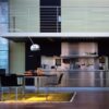 Lámpara de pie de luz directa. Base de mármol blanco de carrara. Vástago telescópico de acero inoxidable satinado. Reflector orientable y regulable en altura de aluminio prensado, pulido y barnizado zapon.