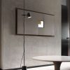 Lampara versión de pie, Counterbalance conserva el característico capuchón de aluminio, regulable en altura gracias a un sencillo mecanismo de deslizamiento en el eje.