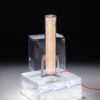 La colección Crisofera de Artemide está constituido por una estratificación conformada por un cilindro de vidrio reciclado soplado, un núcleo óptico remachado que se inspira en la naturaleza refractiva de la superficie congelada de la meseta antártica para maximizar la difusión de la luz, y por un núcleo interior de diodos emisores de luz que recuerdan la estratificación del hielo polar. Está pensada como objetos que arrojan luz sobre la importancia de la Antártida, acerca de la necesidad de implementar una gobernanza equitativa y unas políticas de difusión de los datos en pro del patrimonio común de la humanidad, así como de la urgencia de contribuir a la descarbonización. Criosfera no es “tan solo” una luz: es un manifiesto de nuestro tiempo, un manifiesto lleno de optimismo, que nos anima a defender, individual y colectivamente, la justicia intergeneracional.
