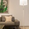 Lámpara de pie con pantalla de uz directa. Base, pie de aluminio y pantalla PE blanco opalino Cable alimentación 1,5m negro o blanco con interruptor de piso on/off Base con bumpers de elastómero negro Colores Blanco y Negro
