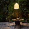 Esta colección toma el nombre de Jaima, esa tienda propia de los beduinos del norte de África, inspirándose en sus telas y sus formas. La pantalla de textilene está disponible en tres tamaños y cuatro colores distintos pero con el interior siempre en blanco para optimizar la calidad de la luz que es directa y hacia abajo. Una vez definido el difusor, se añade una estructura versátil con cambios de altura y rotación que permite lanzar la luz, moverla y hacerla más o menos extensible. Para la Jaima de pie se ha diseñado una estructura extensible y giratoria, y una de menor tamaño que sólo gira.