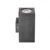 Aplique de pared para exterior de emisión de luz bidireccional. Frente cuadrado. Protección IP 65.
