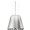 Lámpara colgante de luz difusa. Difusor interior en PC (policarbonato) con acabado blanco mate. Los difusores exteriores están disponibles en fumè realizado en PMMA(polimetilmetacrilato) y en metalizado plata en la superficie interior utilizando un proceso de aluminizado en vacío. Cable de suspensión/eléctrico nico. Rosetón cubridor blanco.