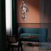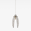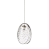 El colgante Mussels es una luminaria que refleja la elegancia, variabilidad y estética orgánica de la superficie del agua cristalina. Dos estructuras de cristal que lleva una huella estampada ondulante rodean una fuente de luz anidada en un lugar preciso, que cuando se enciende, crea el efecto de la luz reflejándose en una superficie de agua. Su inspiración en formas orgánicas, colores naturales y el entorno natural es evidente a primera vista.