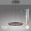 Con su elegante diseño en negro mate, detalles en madera de roble aceitado y funciones innovadora, La lámpara PURE E-Loop establece nuevos estándares en iluminación y tecnología, combinando belleza y funcionalidad en perfecta armonía. Gracias a la exclusiva función e-LIFT®, , la altura de la lámpara se puede ajustar eléctricamente y sin esfuerzo. El motor está ubicado discretamente en la caja del techo, por lo que el ajuste de altura se realiza como por arte de magia. Esta lámpara colgante representa la más alta calidad y una tecnología excepcional. Con el control de temperatura de color CCT tienes control total sobre el color de la luz. Ajuste la temperatura del color continuamente desde blanco cálido 2700K hasta neutro 5000K y cree la atmósfera perfecta para cada ocasión. La luz también es regulable de forma continua, por lo que puedes ajustar el brillo a tu gusto. Con el práctico mando a distancia por radio podrá controlar la iluminación desde cualquier lugar de la habitación, mientras que la función de memoria le permitirá recuperar fácilmente los últimos ajustes seleccionados.