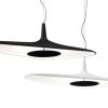 Soportada por un solo cable asimétrico, la lámpara mantiene su equilibrio gracias a los espesores del cuerpo, que varían de 8 a 25 mm, ofreciendo un elemento de iluminación aérea delgado que aporta luminosidad con discreción y elegancia. Un objeto que desafía las leyes de la física, gracias a una tecnología que permite diseñar al borde de lo imposible . Dimerisable push/DALI
