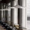 Soportada por un solo cable asimétrico, la lámpara mantiene su equilibrio gracias a los espesores del cuerpo, que varían de 8 a 25 mm, ofreciendo un elemento de iluminación aérea delgado que aporta luminosidad con discreción y elegancia. Un objeto que desafía las leyes de la física, gracias a una tecnología que permite diseñar al borde de lo imposible . Dimerisable push/DALI